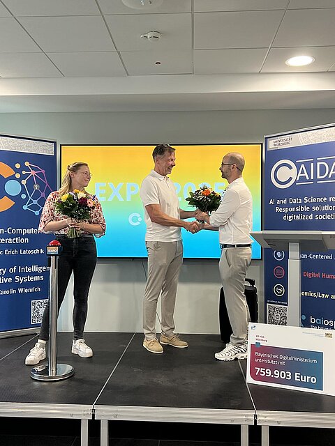 Bavaria’s Digital Minister Dr. Fabian Mehring inaugurated the EXPO with a speech praising students for advancing technology and highlighting the university’s role in innovation. He explored projects like Embodiment of Multiple Avatars in an Avatar Fitting Room, an Acrophobia Therapy in XR, and a Light Show in XR. Dr. Mehring expressed appreciation for the Julius-Maximilians-Universität and emphasized Bavaria’s goal to lead in digital technologies, stating that digitalization improves lives and offers economic opportunities.